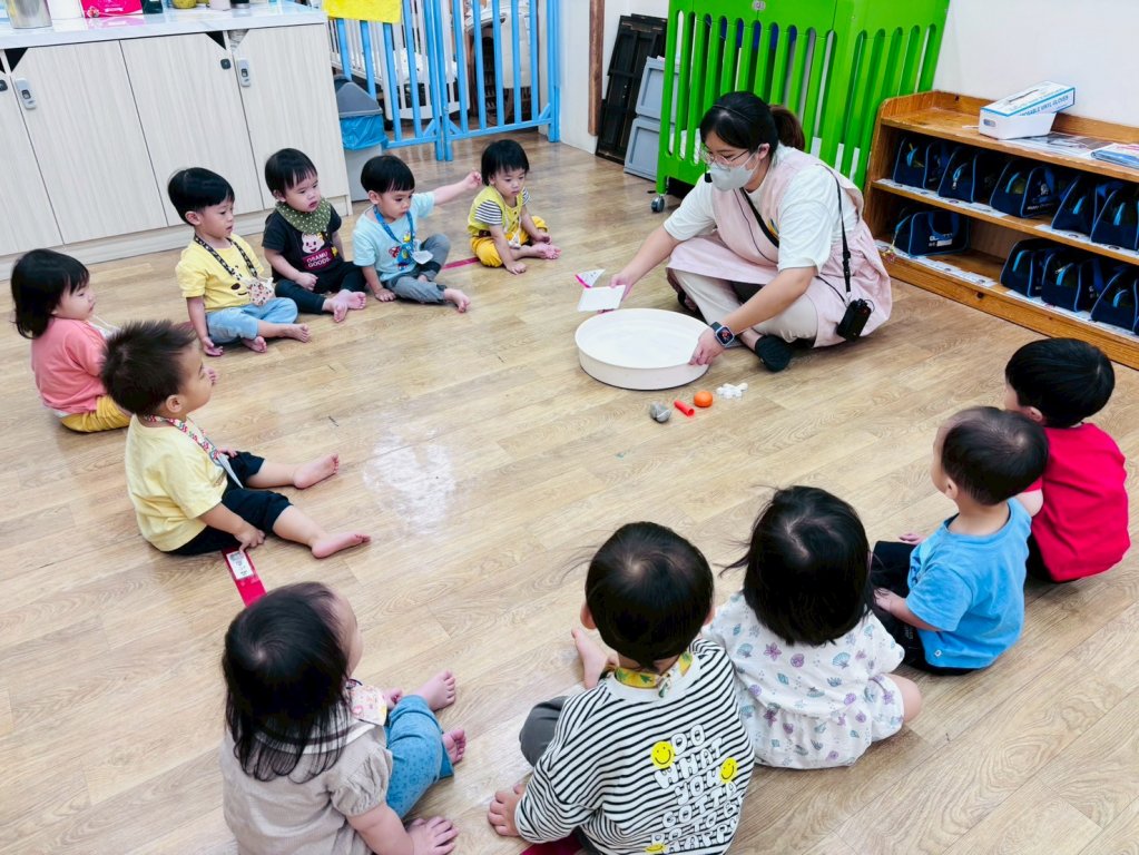 今天老師利用繪本引導孩子認識貨車,並介紹貨車可以載運各種不同的貨物。接著,老師拿出車子積木,對孩子說:「現在請小朋友把積木疊高高,讓貨車準備出發去送貨囉!」活動過程中,孩子們都專注投入,表現得非常棒!此活動可培養孩子手眼協調與精細動作能力,增進語彙理解、專注力及邏輯概念的建立。
