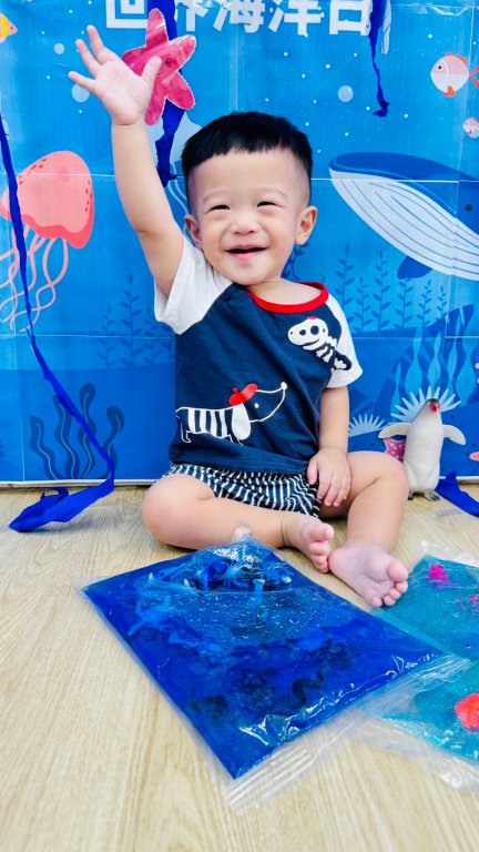 主題課程-海底生物,老師們準備了自製教具,讓孩子們 體驗觸感的感官探索之旅,自由探索中玩出無限大潛能! 一來可豐富孩子的認知學習,二來可進階培養孩子的創意、專 注等等能力。寶貝們從拍打到揉捏,間接認識了海龜,小魚,章魚等等海底 生物,隨著小手的按壓捕捉水中的小生物。 快來看看!寶貝是否收穫滿滿呦~