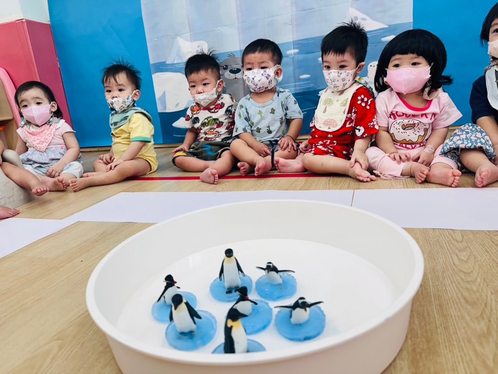 本週運用繪本『哪裡才是我的家?』讓孩子認識企鵝生長的地方,也藉由冰塊讓孩子手跟企鵝一樣腳踏踏冰塊感受冰塊的溫度