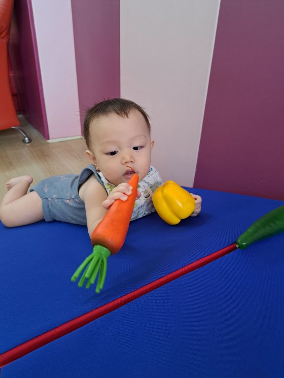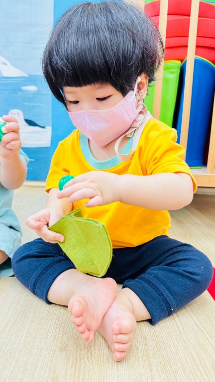 今天老師拿出一個大豌豆,請孩子運用手指將豌豆裡的豆豆拿出來活動過程中,每個孩子都非常專注用手指將豆豆拿出來唷