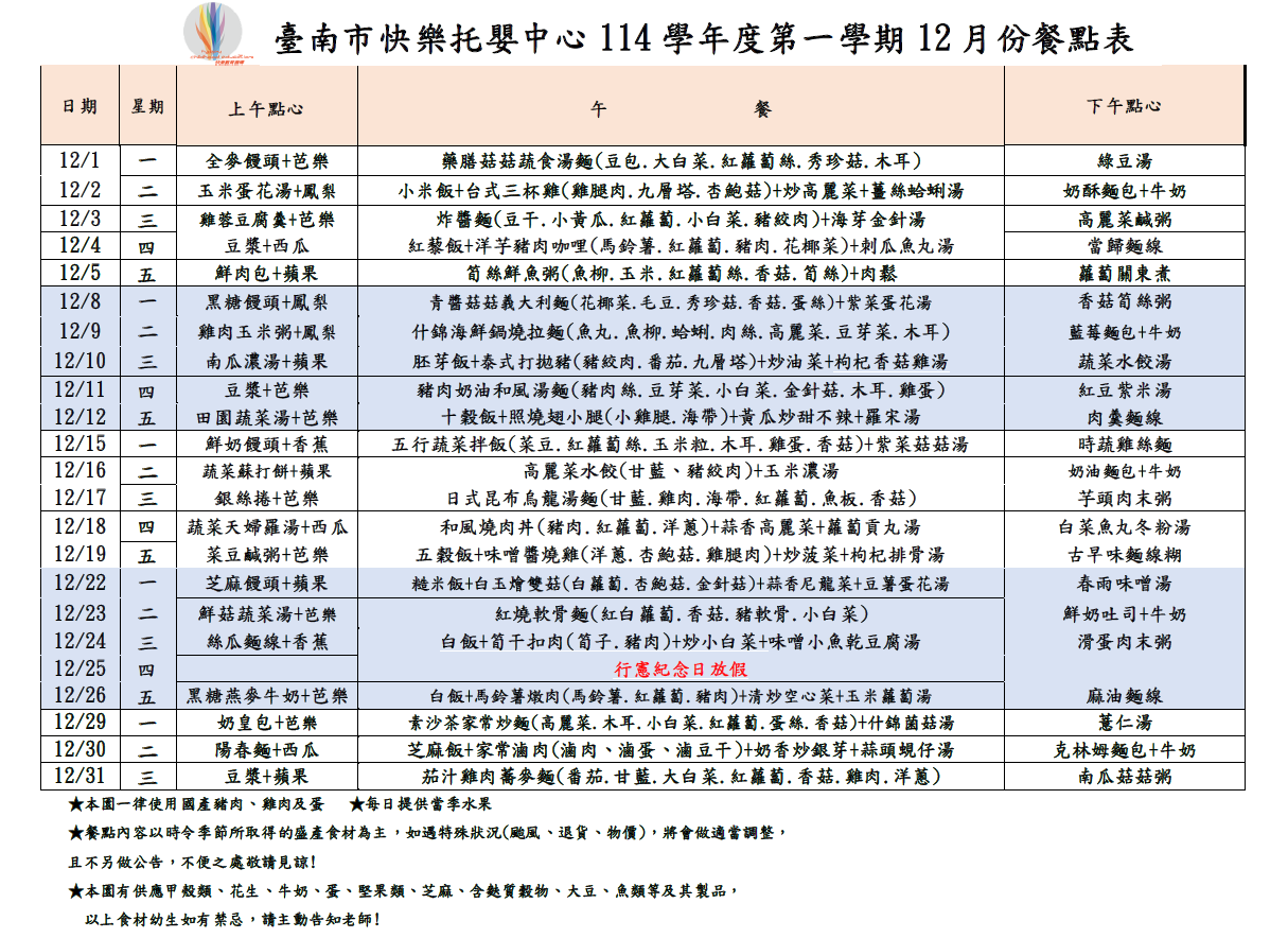 2025.12月餐點表