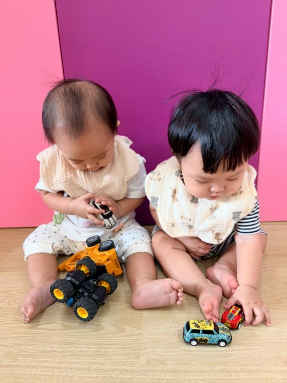 今天老師利用繪本引導孩子認識貨車,並介紹貨車可以載運各種不同的貨物。接著,老師拿出車子積木,對孩子說:「現在請小朋友把積木疊高高,讓貨車準備出發去送貨囉!」活動過程中,孩子們都專注投入,表現得非常棒!此活動可培養孩子手眼協調與精細動作能力,增進語彙理解、專注力及邏輯概念的建立。