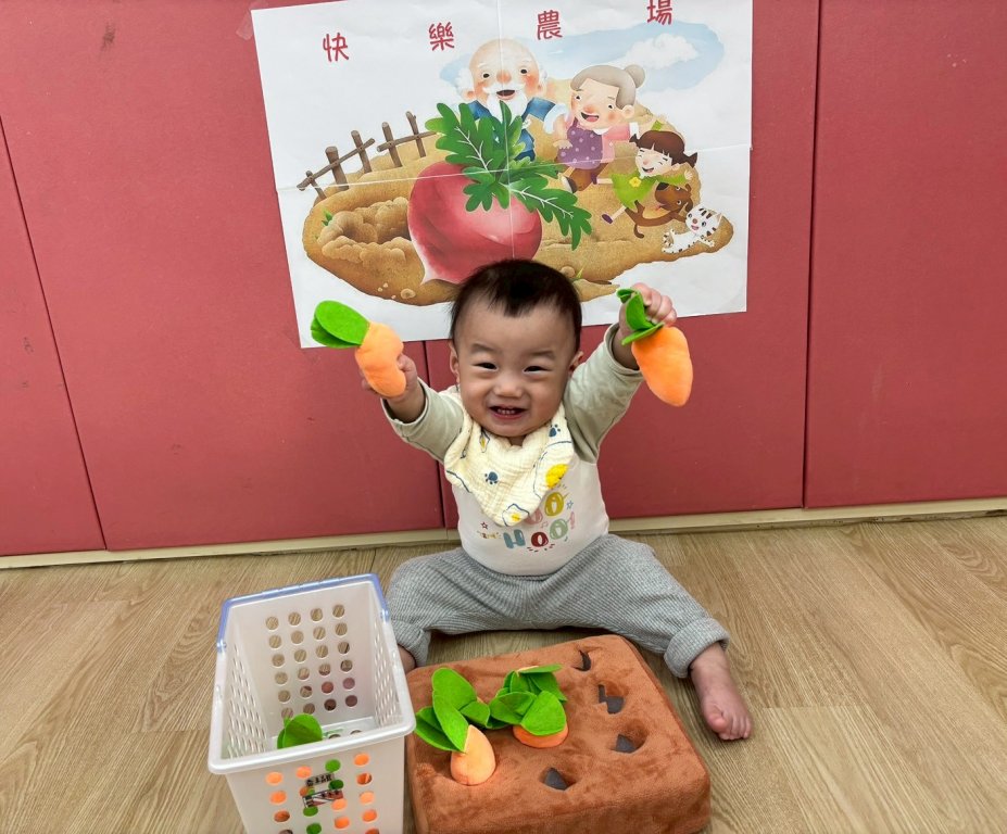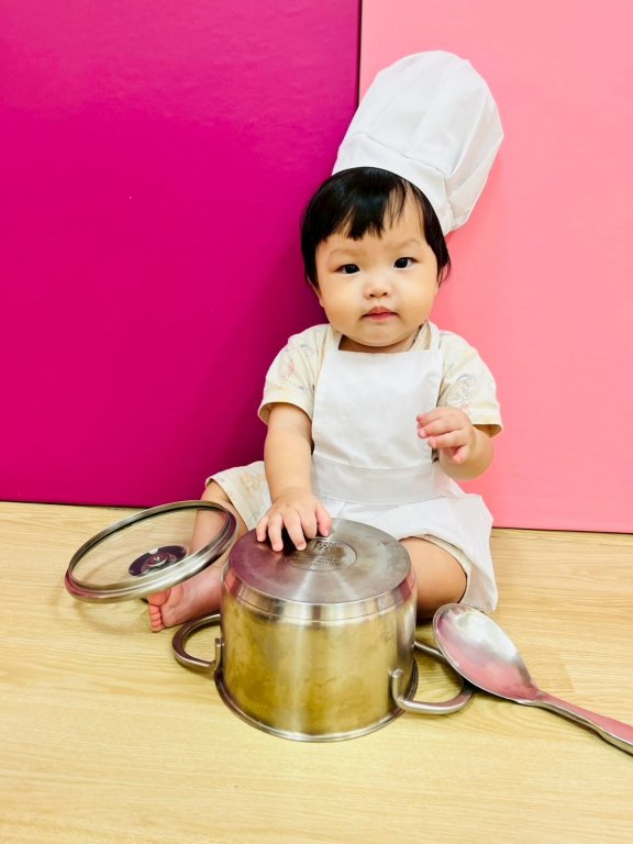 今天我們進行了「小廚師」的主題活動。老師帶孩子認識各種甜點的製作方式,接著請孩子摸摸由菜燕和食用色素做成的果凍,感受軟軟、涼涼的觸感。之後,老師示範如何把模型模具放在果凍上輕輕一壓,做出不同形狀的小甜點。在老師的引導下,孩子們也將自己的模具放在果凍上壓一壓,老師再協助孩子脫模。孩子們能自行選擇自己喜歡的形狀,並說說看壓出了什麼樣的圖案。透過今天的活動,孩子不但體驗到不同的感官刺激,也練習了手部精細動作,同時提升了語彙表達能力。