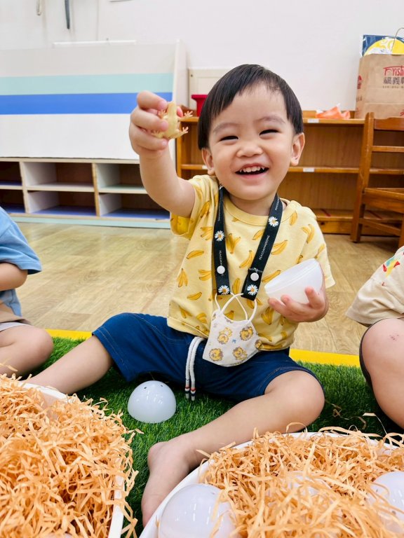今天老師運用繪本《蛋寶寶》,帶領孩子認識哪些動物是從「蛋」裡孵出來的。孩子們聽完故事後,透過玩扭蛋遊戲的方式,打開扭蛋看看裡面藏著哪一種「從蛋裡來的動物」,像是小鱷魚、小蛇或小青蛙等,孩子們都玩得很投入唷❤️