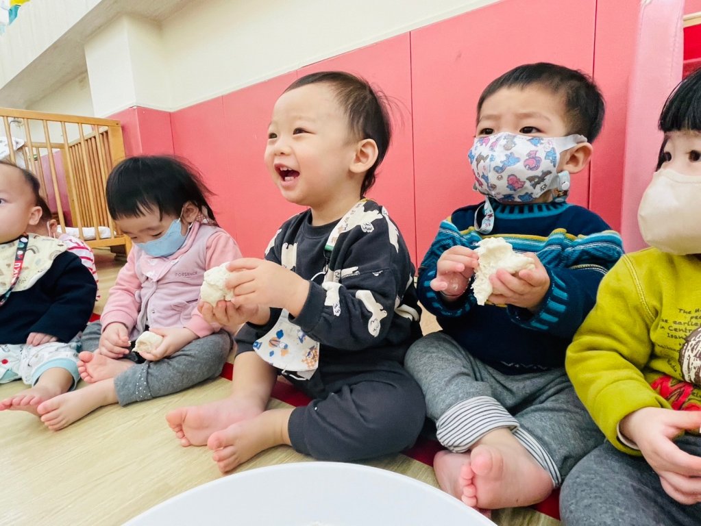 元宵節前夕,老師用麵團(鹽、麵粉、水),讓孩子玩五官~搓搓、壓壓、捏捏的方式,變成獨一無二的湯圓唷~
